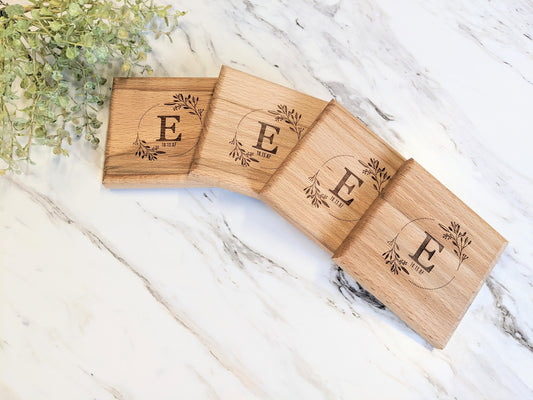 Personalized Wood monogram Coaster Set, Anniversary Monogram Coasters, Wedding Monogram Coasters gift for couples, housewarming coasters